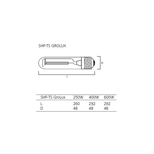 Sylvania GroLux SHP-TS 600W е двуспектърна натриева / HPS крушка / лампа, подходяща както за растеж / вегетация, така и за фазата на цъфтеж.