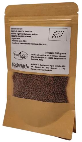 - 1 опаковка сертифицирани органични семена - репички сорт Daikon Panzer 100 гр.