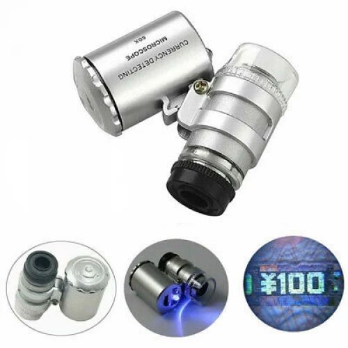 Джобен Микроскоп малък x60 увеличение UV диод за проверка на банкноти